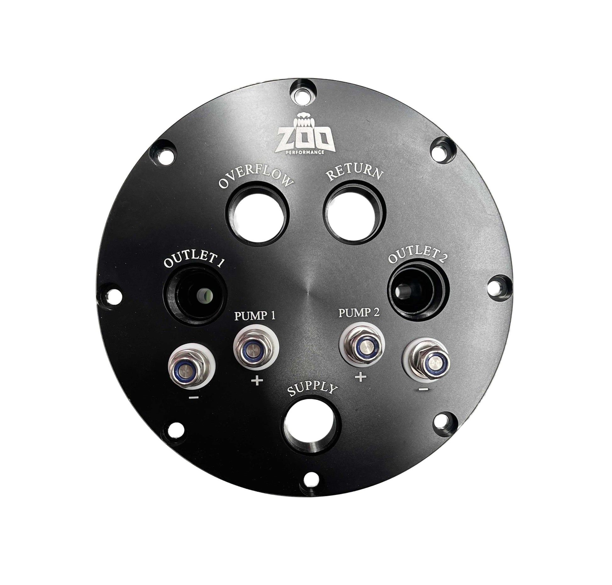Constructed with Dual stainless electrical terminals equipped with hard teflon seals allowing a staged pump opportunity if required. Hard coat anodised black to battle E85 wear issues.